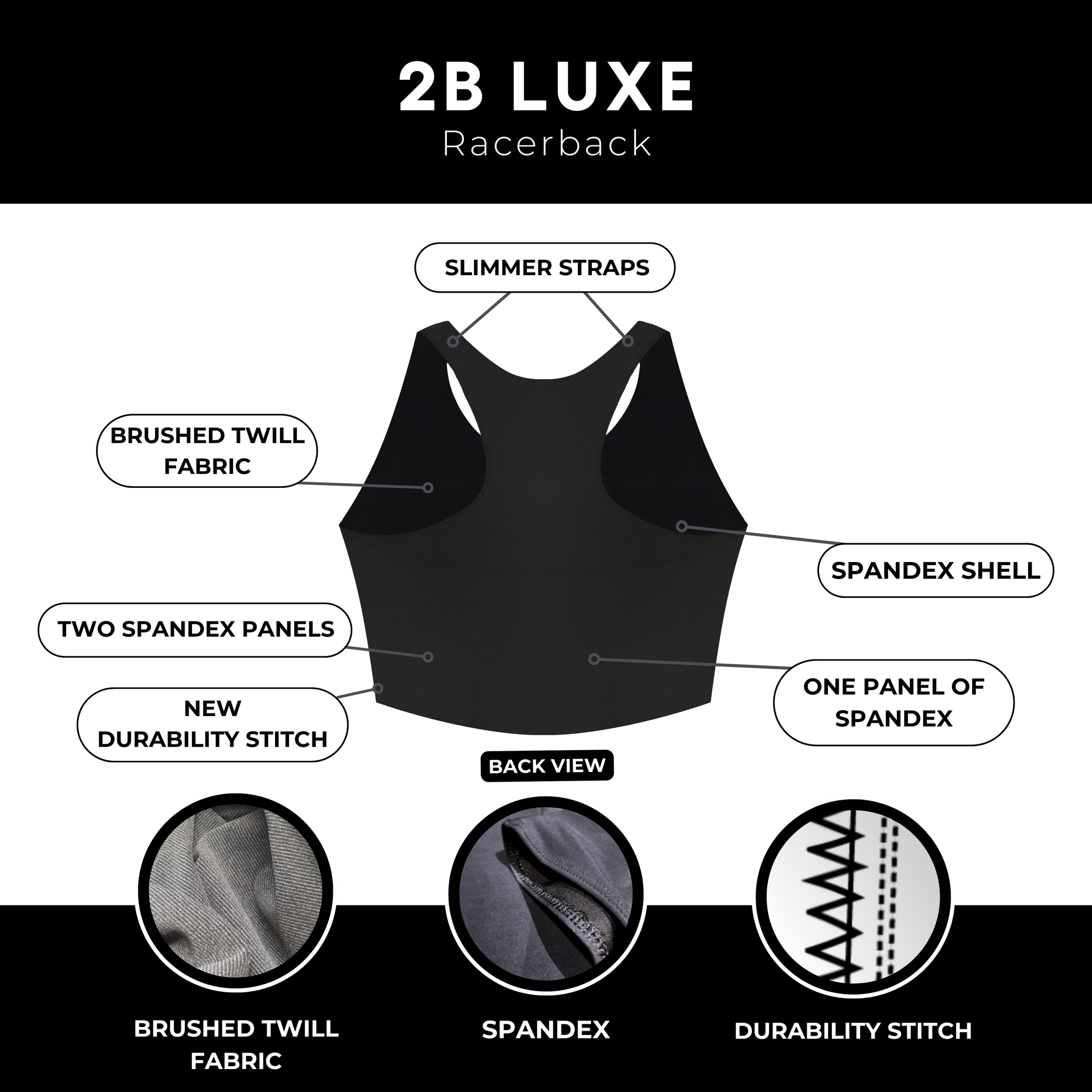 - Racerback Design — Y-shaped back allows for easy movement and flexibility.