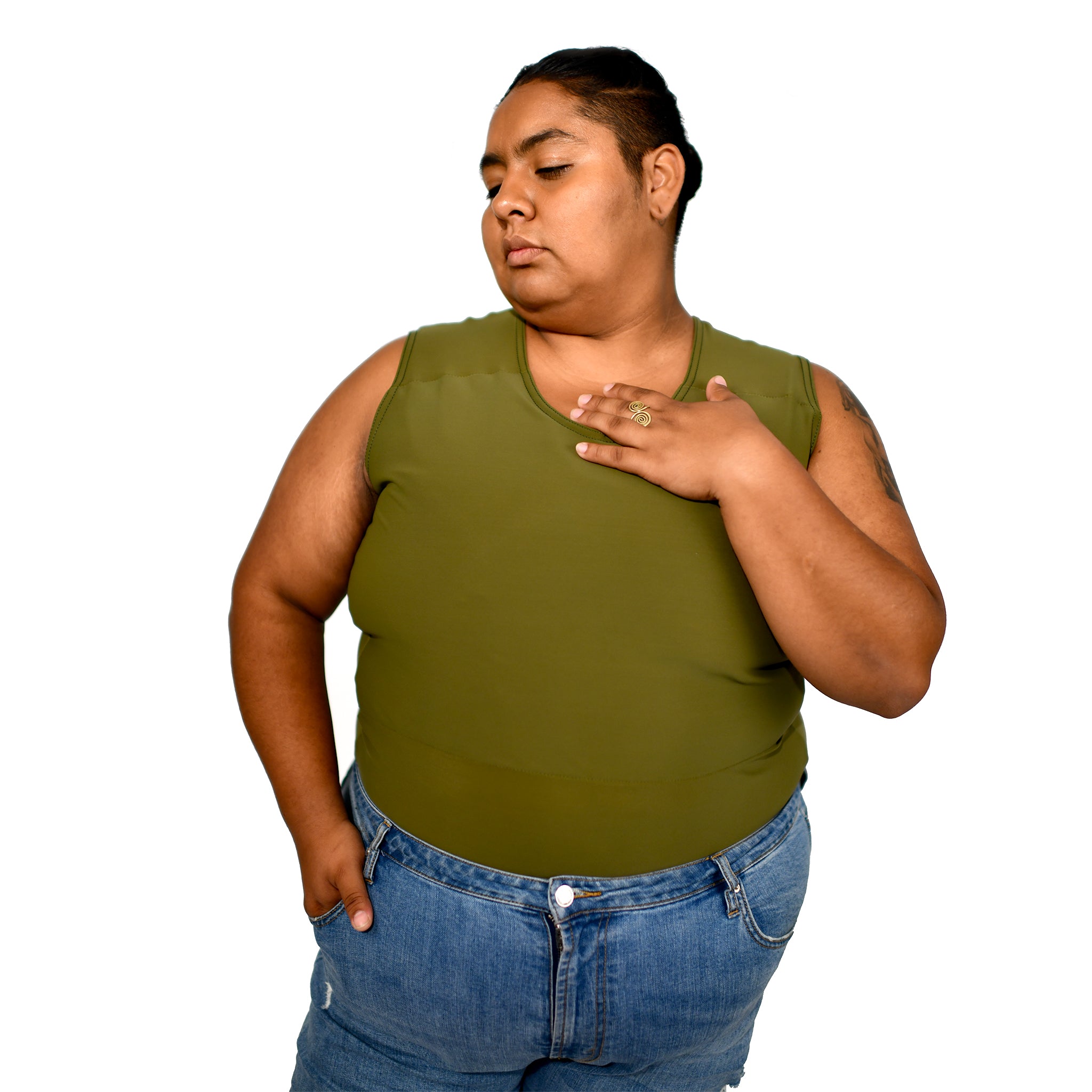 Our patented design uses a double panel binder made with a nylon spandex blend and cotton for extra flattening effect.